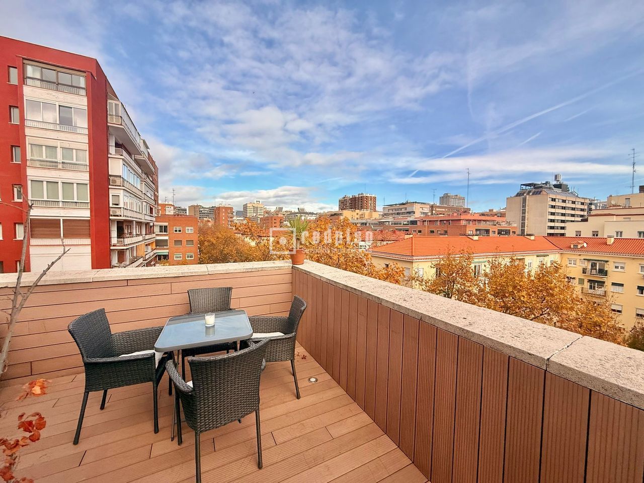 Redpiso lanza en exclusiva este impresionante ático recién reformado. Dispone de un amplio salón, cocina semi independiente totalmente equipada, 3 dormitorios dobles todos con armarios empotrados, 2 baños completos uno de ellos en suite. Destaca por su espectacular terraza con orientación este y norte pero con mucha amplitud de vistas. Calidades premium, aislamientos reforzados, grandes ventanales, terraza de más de 20 metros completamente actualizada. Comunidad tranquila en zona ajardinada, muy próximo a Calle Orense y Paseo de la Castellana