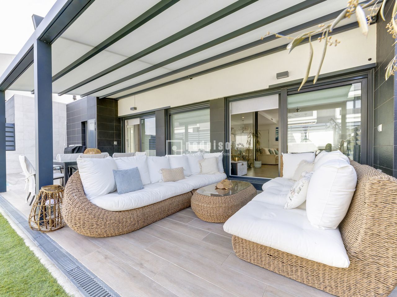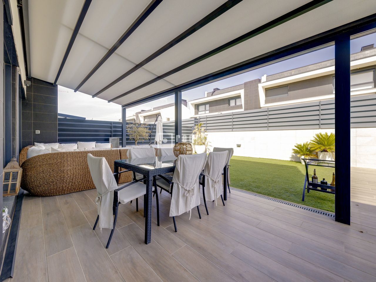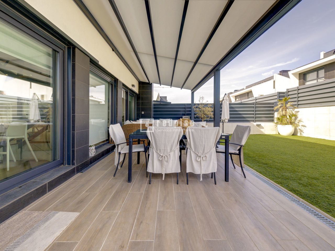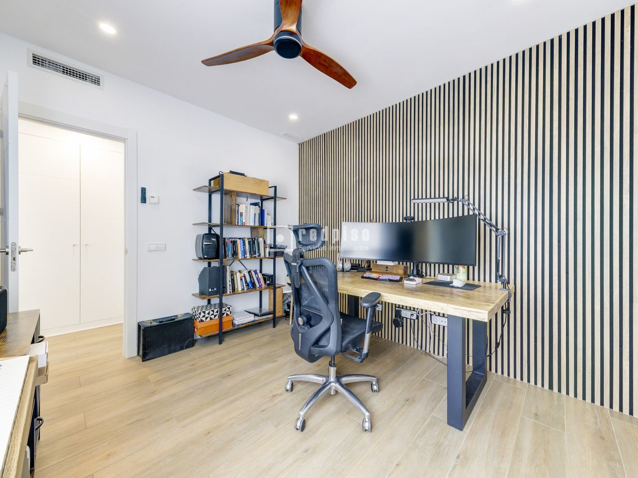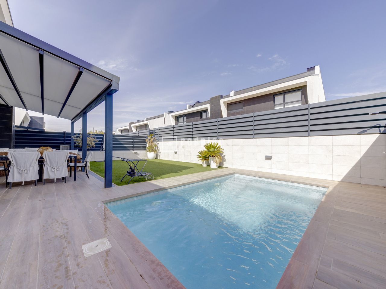 Exclusivo chalet pareado en un entorno privilegiado – Boadilla del Monte Ubicada en una de las zonas más demandadas del término municipal de Boadilla del Monte, esta impecable vivienda pareada se encuentra en un entorno natural privilegiado, que ofrece la combinación ideal entre tranquilidad, privacidad y cercanía a todos los servicios. Una propiedad única para quienes desean hacer realidad el hogar con el que siempre han soñado. Construida con materiales de alta calidad y diseñada para ofrecer el máximo confort y eficiencia, la vivienda cuenta con piscina privada, placas solares, sistema de suelo radiante y una alta eficiencia energética, lo que garantiza un notable ahorro en el consumo y un compromiso con la sostenibilidad. La propiedad se distribuye en tres niveles: planta principal, primera planta y sótano. Planta principal: Un elegante hall recibidor da la bienvenida a esta luminosa planta, que alberga un amplio salón-comedor dividido en dos ambientes, uno de ellos con chimenea cerrada y acceso directo al jardín y a la piscina privada. La cocina, de estilo office y concepto abierto, está perfectamente integrada en el espacio, junto a un aseo de cortesía y un dormitorio versátil. La planta se completa con un lavadero independiente que conecta con una terraza con suelo acristalado y con acceso directo al garaje cerrado. La vivienda dispone además de una segunda plaza de aparcamiento exterior. Primera planta: En este nivel se encuentran tres dormitorios con armarios empotrados. El dormitorio principal, tipo suite, cuenta con un espacioso vestidor y un baño privado equipado con plato de ducha. Además, la planta dispone de un segundo baño completo con bañera y un gran desván, ideal como zona de almacenaje, despacho o sala de juegos. Sótano: La planta sótano ofrece un salón adicional perfecto como zona de ocio o reuniones, dos dormitorios, un baño completo con plato de ducha y un amplio y luminoso patio inglés que proporciona luz natural y ventilación a este nivel, mejorando su funcionalidad y confort. Una vivienda que destaca por su diseño, eficiencia y ubicación, ideal para quienes buscan calidad de vida en un entorno exclusivo.