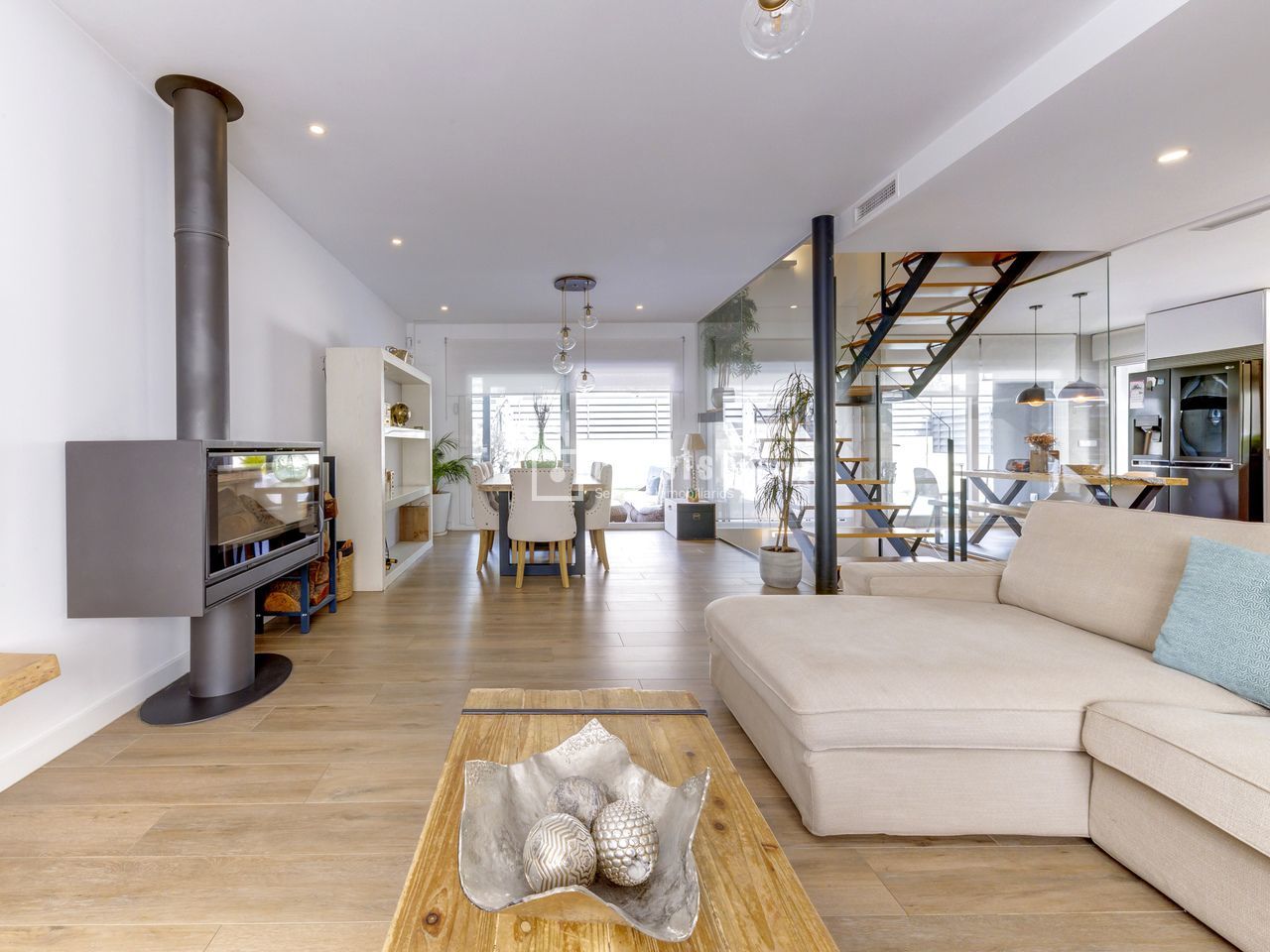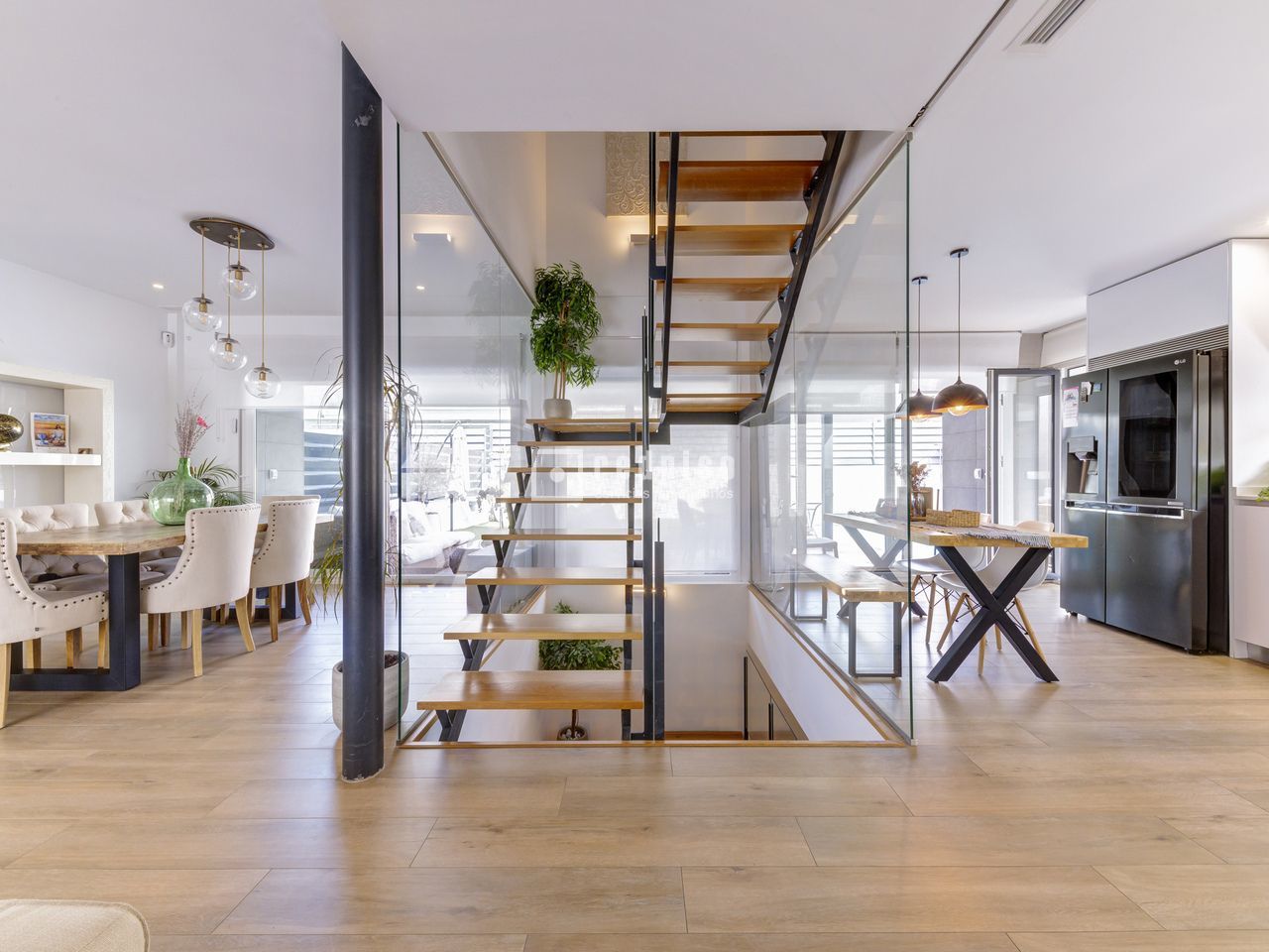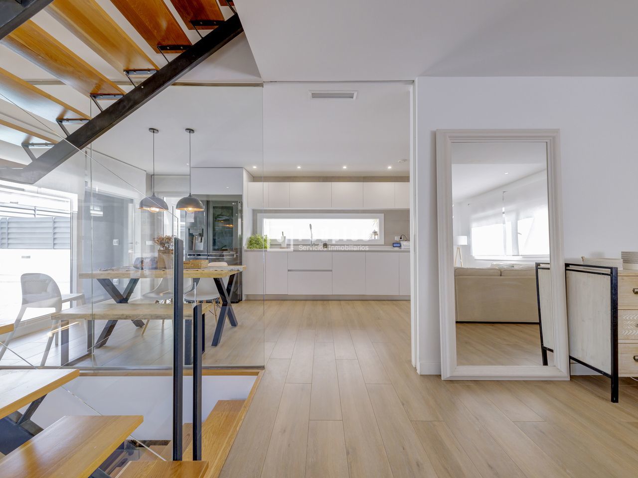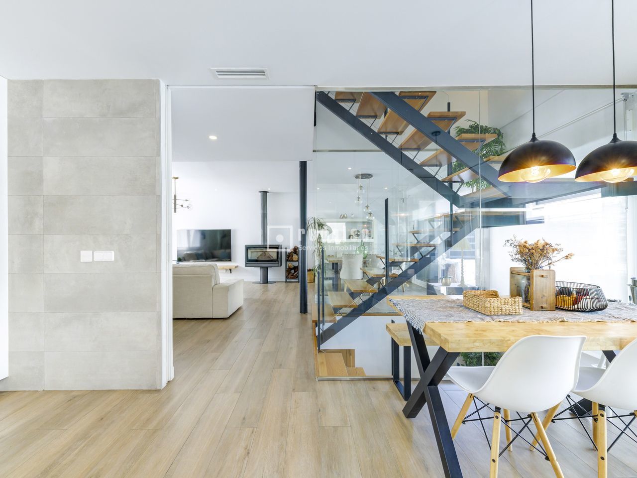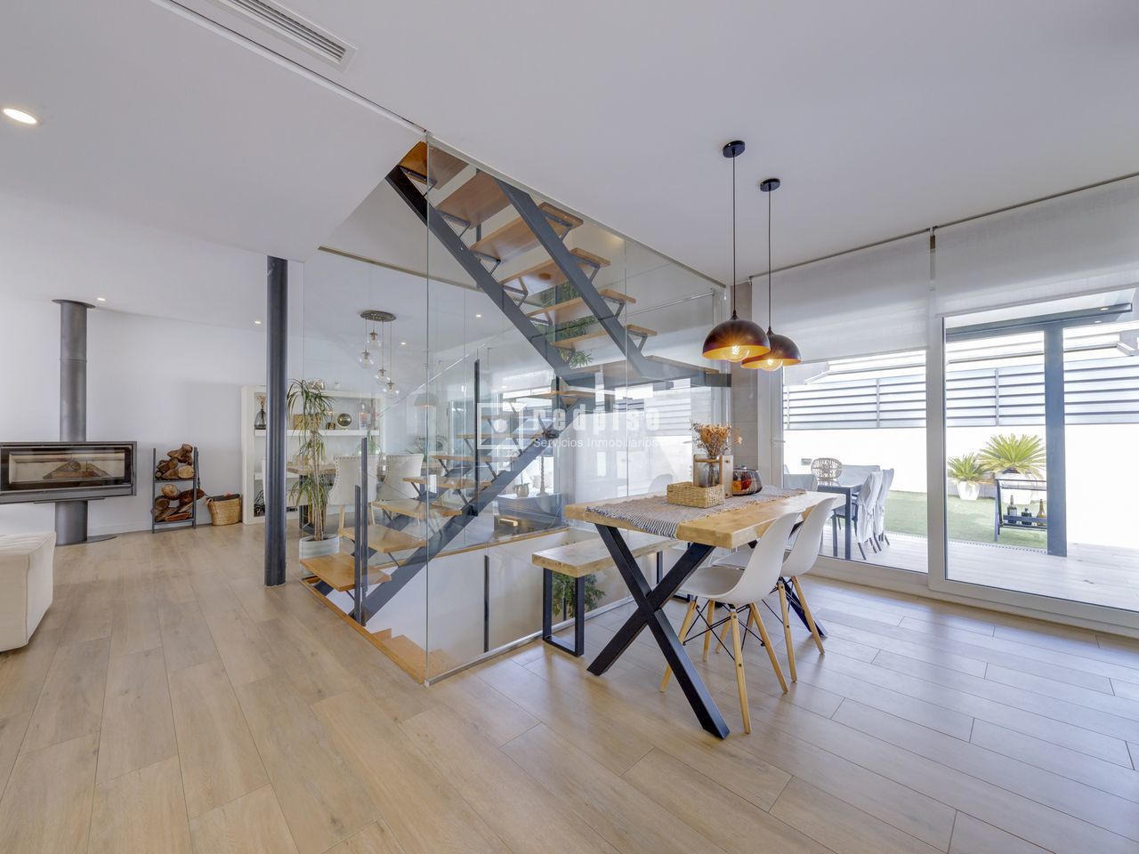 Exclusivo chalet pareado en un entorno privilegiado – Boadilla del Monte Ubicada en una de las zonas más demandadas del término municipal de Boadilla del Monte, esta impecable vivienda pareada se encuentra en un entorno natural privilegiado, que ofrece la combinación ideal entre tranquilidad, privacidad y cercanía a todos los servicios. Una propiedad única para quienes desean hacer realidad el hogar con el que siempre han soñado. Construida con materiales de alta calidad y diseñada para ofrecer el máximo confort y eficiencia, la vivienda cuenta con piscina privada, placas solares, sistema de suelo radiante y una alta eficiencia energética, lo que garantiza un notable ahorro en el consumo y un compromiso con la sostenibilidad. La propiedad se distribuye en tres niveles: planta principal, primera planta y sótano. Planta principal: Un elegante hall recibidor da la bienvenida a esta luminosa planta, que alberga un amplio salón-comedor dividido en dos ambientes, uno de ellos con chimenea cerrada y acceso directo al jardín y a la piscina privada. La cocina, de estilo office y concepto abierto, está perfectamente integrada en el espacio, junto a un aseo de cortesía y un dormitorio versátil. La planta se completa con un lavadero independiente que conecta con una terraza con suelo acristalado y con acceso directo al garaje cerrado. La vivienda dispone además de una segunda plaza de aparcamiento exterior. Primera planta: En este nivel se encuentran tres dormitorios con armarios empotrados. El dormitorio principal, tipo suite, cuenta con un espacioso vestidor y un baño privado equipado con plato de ducha. Además, la planta dispone de un segundo baño completo con bañera y un gran desván, ideal como zona de almacenaje, despacho o sala de juegos. Sótano: La planta sótano ofrece un salón adicional perfecto como zona de ocio o reuniones, dos dormitorios, un baño completo con plato de ducha y un amplio y luminoso patio inglés que proporciona luz natural y ventilación a este nivel, mejorando su funcionalidad y confort. Una vivienda que destaca por su diseño, eficiencia y ubicación, ideal para quienes buscan calidad de vida en un entorno exclusivo.