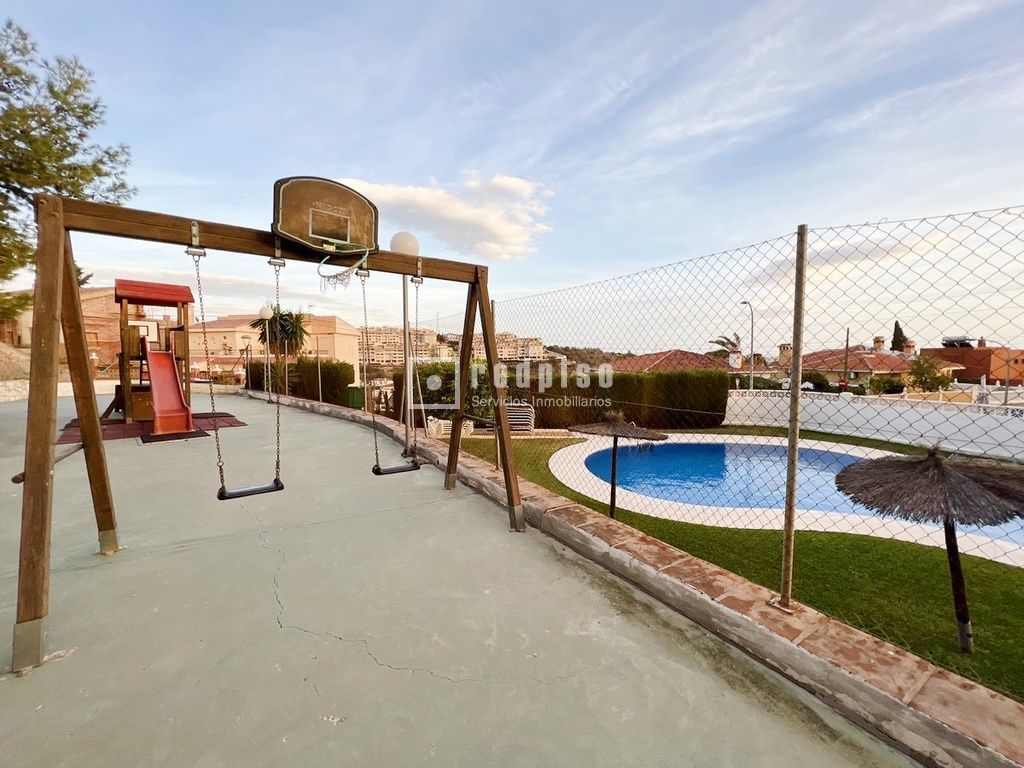 Urbanización cerrada con zonas comunes, piscina, zonas ajardinadas y parque infantil.