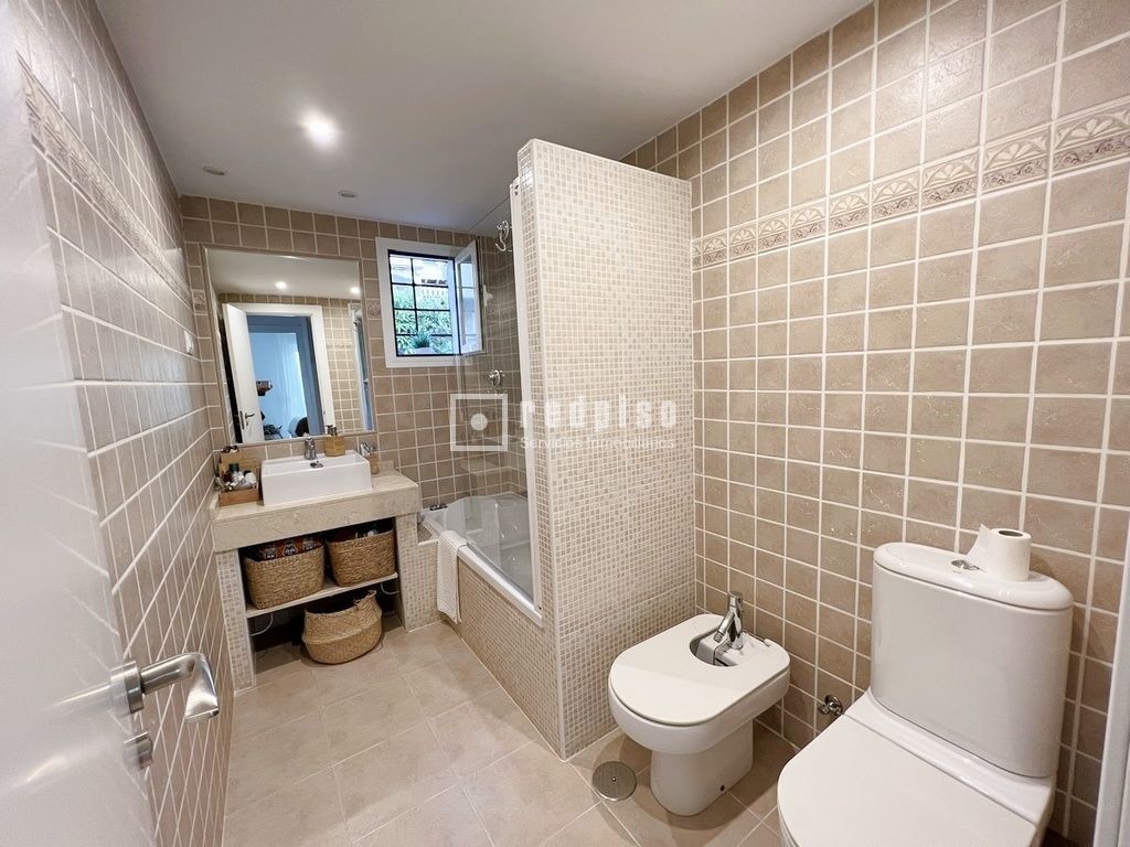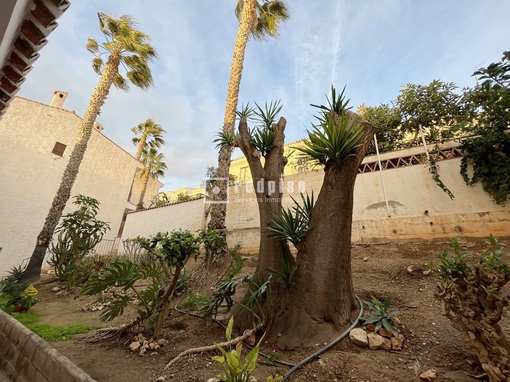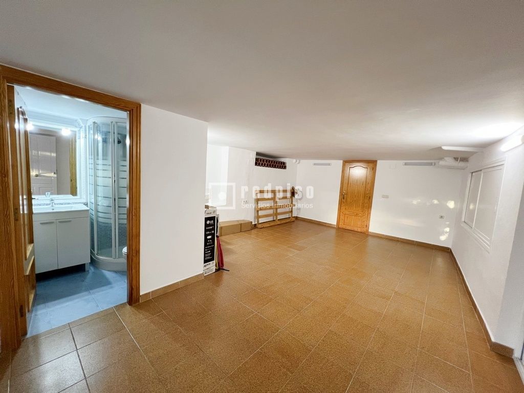 Cuando entramos a la vivienda desde la calle, nos encontramos con un hermoso patio de 30m² con barbacoa, desde el cual se puede acceder a una habitación muy amplia, con armarios empotrados, trasteros y con baño completo.