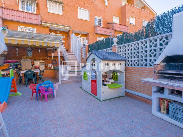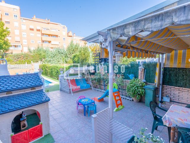 ¡¡GRAN OPORTUNIDAD!! Redpiso Arroyomolinos VENDE fantástico chalet ADOSADO con parcela en Parque Coimbra. La vivienda cuenta con PISCINA PRIVADA y jardín. El chalet cuenta con 4 alturas, que se distribuyen de la siguiente manera: EN LA PLANTA INFERIOR contamos con 1 salón, 1 dormitorio y acceso al garaje. Desde esta planta tenemos acceso a la parcela con una PISCINA PRIVADA rodeada de césped artificial, también dispone de BARBACOA de obra. EN LA PLANTA CALLE tenemos el hall recibidor, cocina, despensa y 1 aseo. EN LA PLANTA PRIMERA contamos con distribuidor, 2 amplios dormitorios con armarios empotrados y 1 baño completo, EN LA PLANTA SUPERIOR contamos con 1 dormitorio con baño en suite y aire acondicionado, subimos unas escaleras y nos encontramos con 1 dormitorio abuhardillado, 1 despacho que se puede convertir en dormitorio y terraza. ¡¡VISITANOS SIN COMPROMISO!! Según el Real Decreto de 218/2005 de 11 de octubre, los precios ofertados no comprenden los tributos (Impuestos de Transmisiones Patrimoniales), ni los gastos notariales y registrales relativos a la compra-venta, ni la comisión de intermediación que satisface el comprador. Financiación ofrecida por nuestro departamento financiero Dcredit.