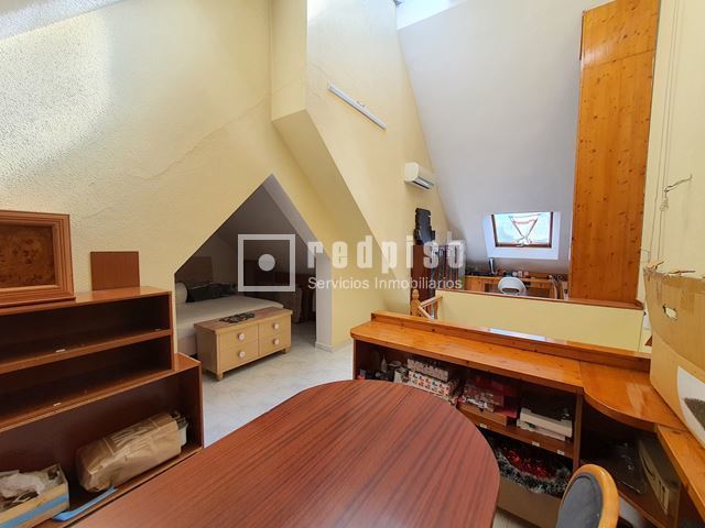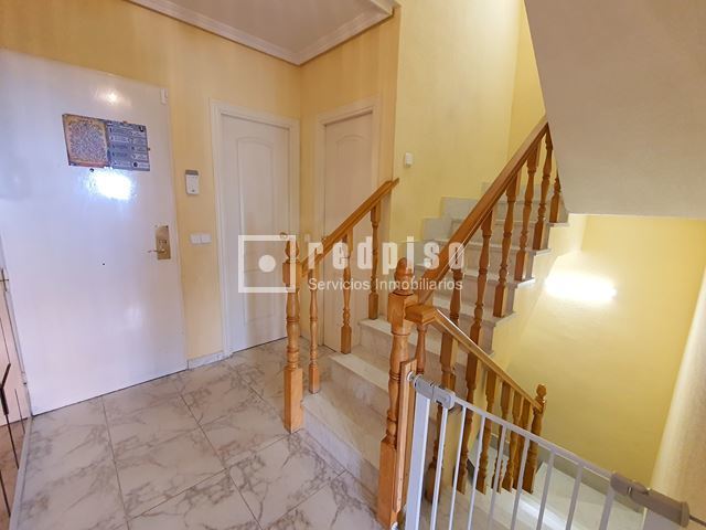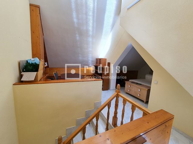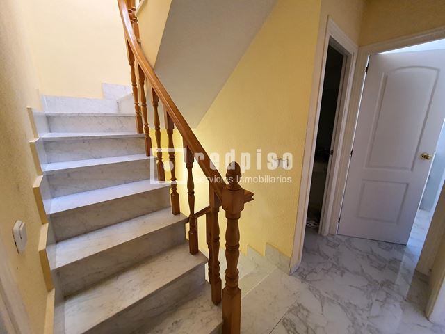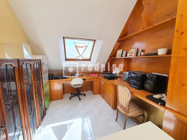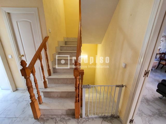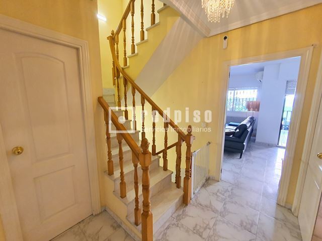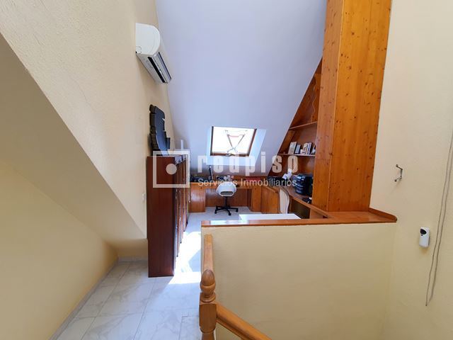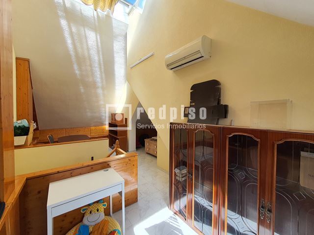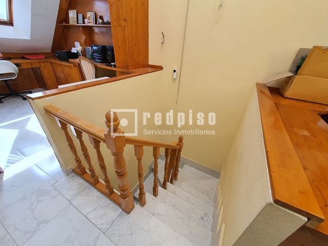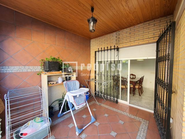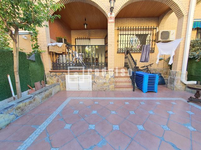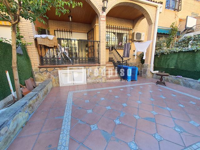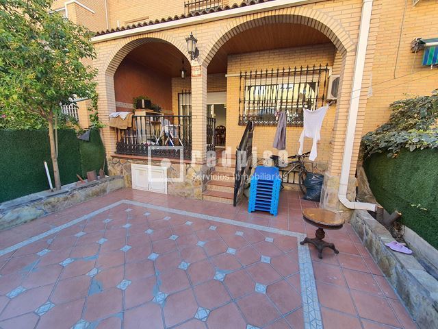 Redpiso Getafe Sector 3 vende un magnifico chalet adosado en el Sector 3. Dispone de 233m2 de superficie construida, distribuidos en 4 plantas. En planta principal encontramos un amplio salón independiente con salida a un porche y a patio trasero de 34 m2, cocina, aseo, amplio garaje de 23 m2, y habitación en planta baja. La primera planta compuesta por 3 dormitorios, 2 baños (uno en suite) con bañera y otro con plato de ducha y terraza exterior. Dos dormitorios cuentan con armarios empotrados. Buhardilla diáfana y acondicionada de 23 m2, con amplios maleteros, ventana de velux y gran tragaluz, para una mayor luminosidad. Además de todo lo anterior, dispone de un excelente sótano diáfano y acondicionado de 60m2. Que cuenta con buena ventilación con ventanas en la parte delantera y en la parte trasera. Toda la vivienda dispone de calefacción y agua caliente de gas natural, aire acondicionado frío y calor en los dormitorios y en el salón. Cuenta con suelos de gres y tarima, escalera con barandilla de madera y escalones de mármol, paredes en liso y gota, ventanas de aluminio blanco, puertas lacadas en blanco, toldos en patio trasero, puerta principal blindada y puerta del garaje automática. La vivienda se encuentra para entrar a vivir. Muy bien comunicado, al lado de la autovía, M50 y A42, Metro Sur Conservatorio, autobuses urbanos e interurbanos. Cerca de CC. Getafe 3 y Mercadona. Si desea visitar la vivienda, no dude en contactar con nosotros para concretar una cita sin ningún compromiso.