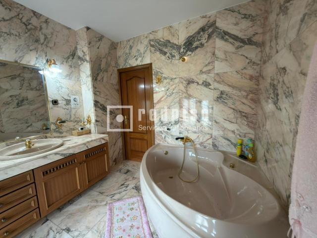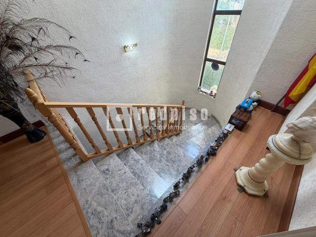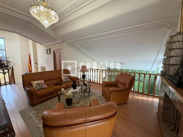 En la planta principal, un distinguido recibidor da paso a un amplio salón principal con chimenea, techos de notable altura y vistas abiertas hacia el salón de la planta superior, lo que aporta una gran luminosidad y una agradable sensación de continuidad visual. Desde este espacio se accede a una terraza acristalada tipo jardín de invierno, perfecta para disfrutarla durante todo el año.