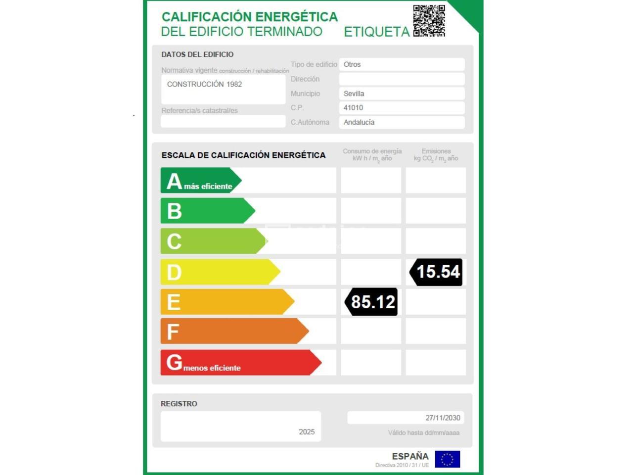 Consumo: 85 KW h/m² año