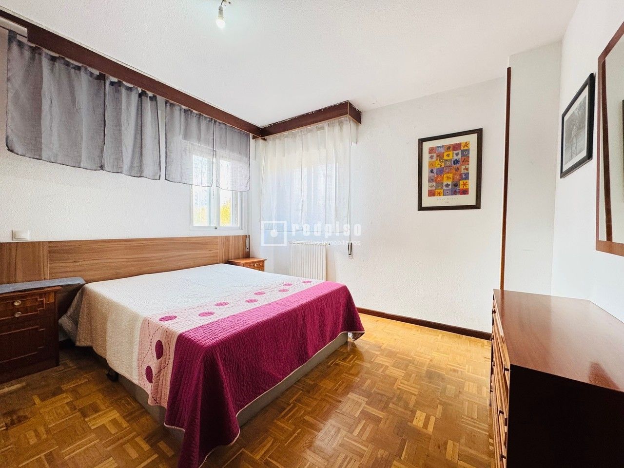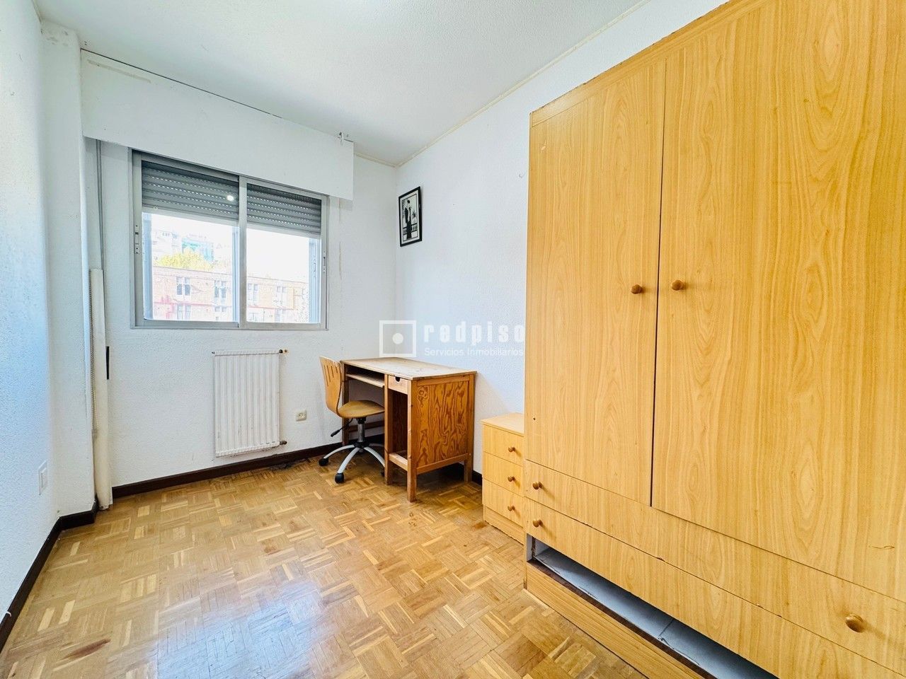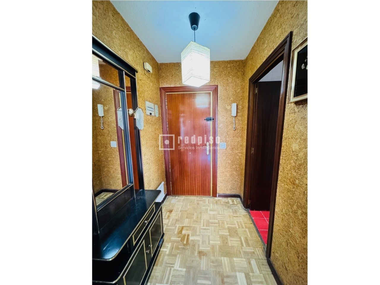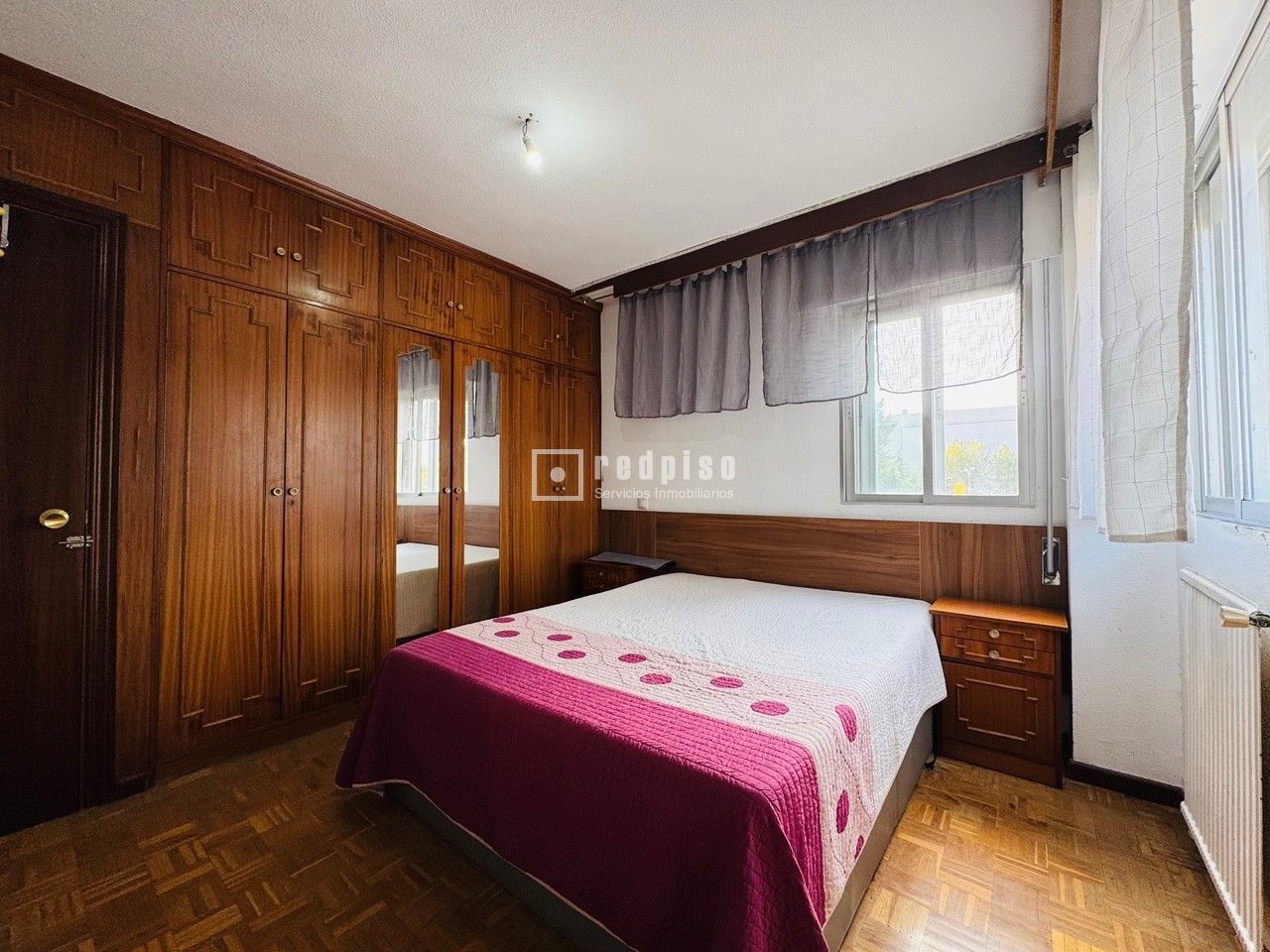 Se vende vivienda de 108 m² construidos, distribuida en cuatro dormitorios, dos cuartos de baño, salón independiente con terraza acristalada, y cocina con doble comunicación y tendedero cerrado. La propiedad dispone de ventanas y contraventanas de aluminio sencillo, suelos de parquet en tablilla, pared de corcho en el salón y gotelé en dormitorios y pasillo. Ambos baños cuentan con ventana y bañera. La finca está equipada con ascensor y se ubica en un entorno de excelente comunicación, próxima a la estación de Renfe La Serna y con acceso inmediato a las carreteras M-50 y M-40. En las proximidades se encuentran centros educativos (colegio e instituto), centro cultural y establecimientos comerciales, lo que dota a la zona de todos los servicios necesarios.