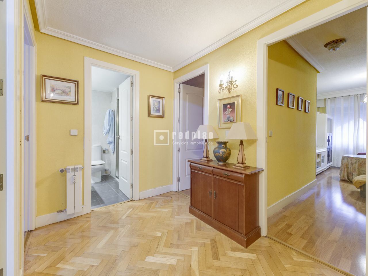 REDPISO MAJADAHONDA PRESENTA EN EXCLUSIVA esta amplia y luminosa vivienda de 4 dormitorios, situada en pleno centro de la localidad, con todos los servicios a un paso: comercios, supermercados, colegios, centros médicos, restauración y excelentes comunicaciones. La vivienda se encuentra en una finca con ascensor y destaca por su gran superficie, su cómoda distribución y su orientación sur, que garantiza una magnífica entrada de luz natural durante todo el día. Además, cuenta con plaza de garaje y trastero, un valor añadido imprescindible en la zona. Distribución: Al acceder a la vivienda nos recibe un amplio hall de entrada, con doble puerta de acceso, principal y de servicio, que aporta comodidad y privacidad. La cocina es especialmente espaciosa, ideal para el día a día, con zona office y salida independiente, ofreciendo múltiples posibilidades de reforma o actualización según necesidades. El salón-comedor, de grandes dimensiones y con orientación sur, es uno de los espacios protagonistas de la vivienda, perfecto para disfrutar en familia o con invitados gracias a su amplitud y luminosidad. La zona de descanso se compone de 4 dormitorios, todos ellos con armarios empotrados y buen tamaño. El dormitorio principal dispone de baño en suite reformado, aportando un plus de comodidad. La vivienda cuenta además con un baño completo adicional que da servicio al resto de las habitaciones. Extras y características adicionales: • Plaza de garaje incluida. • Trastero. • Finca con ascensor. • Vivienda amplia y muy luminosa. • Excelente ubicación céntrica. Una vivienda ideal tanto para familias como para quienes buscan una propiedad con gran potencial, espacio y una ubicación inmejorable en Majadahonda.