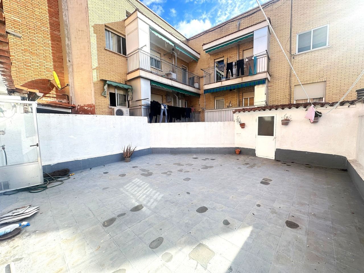 Vivienda interior ubicada en una primera planta sin ascensor, con 96,18 m² construidos. Además, dispone de un patio de 41,30 m² de uso privativo, no incluidos en la superficie construida. El piso se distribuye en tres dormitorios, salón independiente con aire acondicionado, cocina, baño completo con plato de ducha y un pequeño trastero dentro de la vivienda. Dispone de suelos cerámicos, paredes lisas, carpintería interior de madera y carpintería exterior de aluminio. El salón cuenta con aire acondicionado. La vivienda se encuentra a reformar, ofreciendo grandes posibilidades de personalización. Una oportunidad ideal para quienes buscan un inmueble amplio, con un atractivo espacio exterior propio y mucho potencial, en una zona consolidada de Madrid. Este anuncio es meramente informativo y no contractual. El precio no incluye el Impuesto de Transmisiones Patrimoniales (hasta un 6% en la Comunidad de Madrid), ni los gastos notariales, registrales y servicios inmobiliarios.