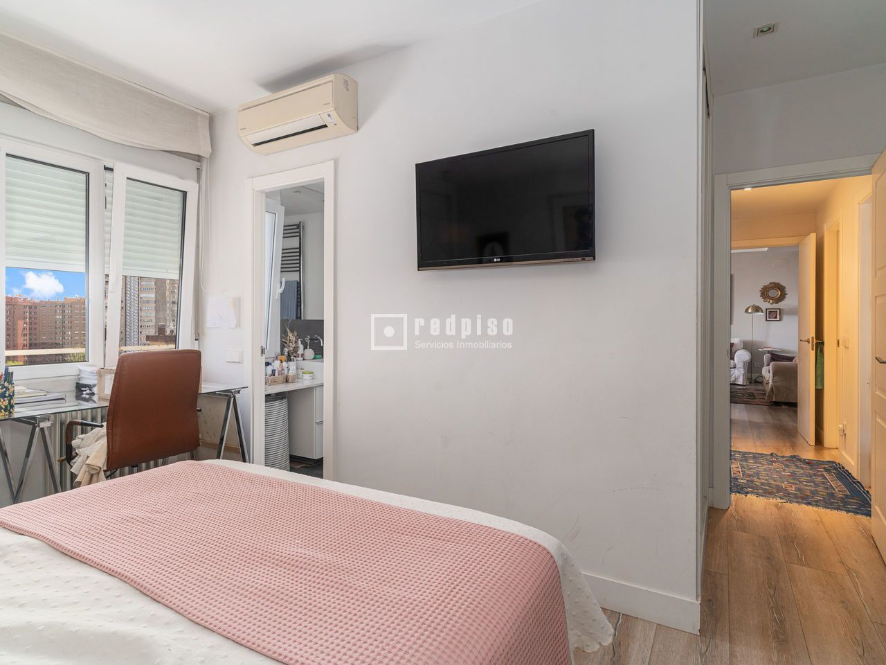 Redpiso pone a su disposición esta magnífica vivienda situada en una 11ª planta, con orientación Este y una excelente luminosidad natural. Ubicada en una zona residencial tranquila y bien comunicada, ofrece vistas despejadas y una distribución funcional pensada para el confort diario. El inmueble cuenta con una superficie de 133 m² construidos y 112 m² útiles. Se compone de un amplio salón comedor con aire acondicionado, una cocina independiente de generosas dimensiones con zona de office, tres dormitorios con armarios empotrados y dos baños completos: uno con bañera y otro con plato de ducha en suite dentro del dormitorio principal, que también dispone de aire acondicionado. La vivienda cuenta con paredes lisas, suelos de tarima y ventanas con doble acristalamiento, lo que proporciona un excelente aislamiento térmico y acústico. Además, incluye trastero como espacio adicional de almacenaje. Gastos de comunidad: 260€ IBI: 900€ La finca dispone de portero físico durante el día y piscina comunitaria, ideal para disfrutar en los meses de verano. Se encuentra ubicada en la Calle Caleruega, a pocos minutos andando de las estaciones de Metro Bambú (Línea 1) y Pinar de Chamartín (Líneas 1, 4 y Metro Ligero). Además, cuenta con varias paradas de autobús cercanas, como las líneas 7, 29, 107 y 129, que conectan cómodamente con distintas zonas de Madrid. En los alrededores encontrarás todo tipo de servicios: supermercados, colegios, farmacias, restaurantes y pequeños comercios, lo que hace de esta vivienda una opción ideal para familias o quienes buscan comodidad y buena comunicación. Desde Redpiso le ofrecemos un servicio integral: asesoramiento personalizado, ayuda en la búsqueda de financiación, gestión documental y acompañamiento durante todo el proceso de compra. ¡NO DEJE PASAR ESTA OPORTUNIDAD Y VENGA A VISITARLO! Le esperamos en nuestras oficinas de Calle Caleruega, 17.