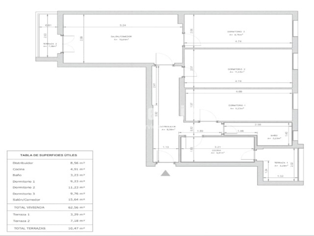 Metros útiles: 61 m²