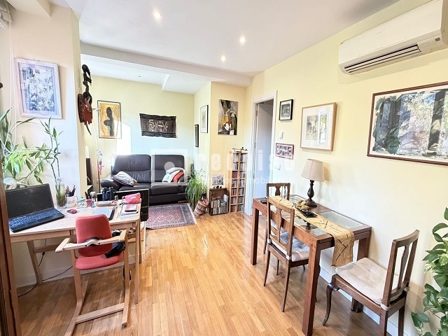 La distribución es funcional y muy versátil. El hall de entrada da acceso a una cocina independiente, con buen espacio de almacenaje y diseñada para optimizar cada rincón. A continuación, encontramos un amplio salón-comedor, muy luminoso gracias a sus grandes ventanales, ideal tanto como zona de descanso como para reuniones sociales. Existe, además, la posibilidad de redistribuir la vivienda para obtener 2 dormitorios, aumentando su potencial y adaptándola a distintas necesidades. El dormitorio principal, de generosas dimensiones, destaca por su confort y sus armarios empotrados, que permiten mantener un orden impecable. El piso incluye un baño en perfecto estado, práctico y confortable.