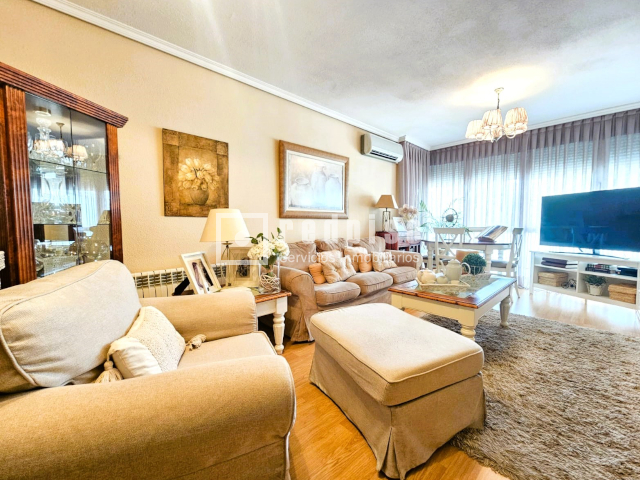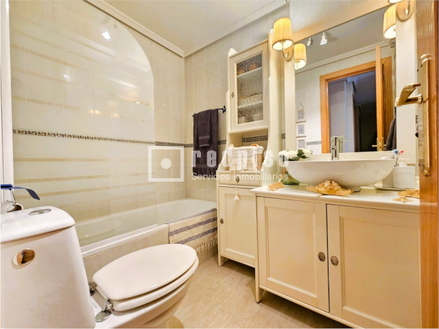 Descubre esta fantástica vivienda situada en la tercera planta de un edificio con ascensor, dentro de una urbanización privada y exclusiva que ofrece todo lo necesario para disfrutar de la tranquilidad y el confort en el día a día. Características principales: Superficie: Vivienda muy amplia y luminosa, perfectamente distribuida para aprovechar cada espacio. Dormitorios: 3 habitaciones espaciosas, todas con armarios empotrados que facilitan el orden y almacenamiento. Baños: 2 completos, uno con bañera ideal para momentos de relax, y otro con plato de ducha para mayor comodidad. Salón: Estancia amplia, muy luminosa, equipada con aire acondicionado para el máximo confort. Dormitorio principal: Con aire acondicionado y espacio perfecto para crear un ambiente acogedor. Hall recibidor: Muy amplio, que aporta elegancia y practicidad desde la entrada. Cocina: Reformada, moderna, muy amplia y funcional, ideal para los amantes de la gastronomía y la vida en familia. Calidades y acabados: Suelos de tarima que aportan calidez a toda la vivienda. Ventanas climalit con mosquiteras, garantizando aislamiento térmico, acústico y confort. Puerta de seguridad, que asegura tranquilidad y confianza. Zonas comunes y extras: Piscina comunitaria rodeada de zonas verdes, perfectas para disfrutar del verano. Garaje incluido, que ofrece comodidad y seguridad para tu vehículo. Urbanización privada, lo que garantiza mayor privacidad y seguridad para toda la familia. Ubicación: Situada en una zona privilegiada, tranquila y familiar, con todos los servicios al alcance: colegios, supermercados, transporte público, zonas de ocio y restauración. Un entorno ideal, especialmente pensado para familias con niños, gracias a la seguridad y las amplias zonas comunes de la urbanización. Esta vivienda es una gran oportunidad para quienes buscan dar un paso hacia un hogar más amplio, moderno y confortable, rodeado de servicios y en un entorno seguro y tranquilo.