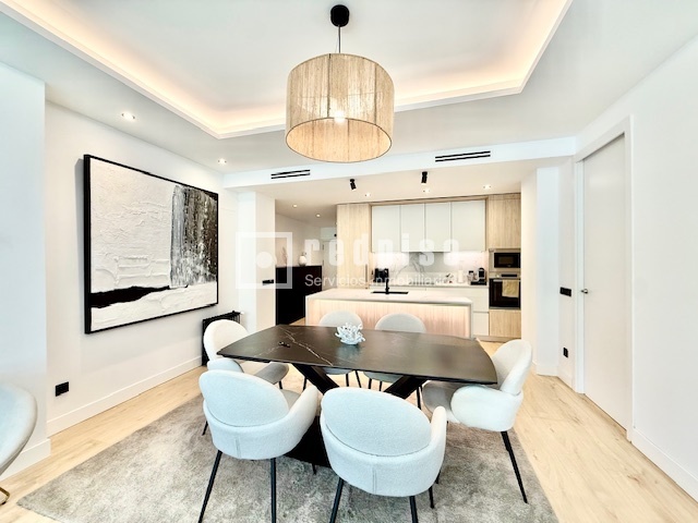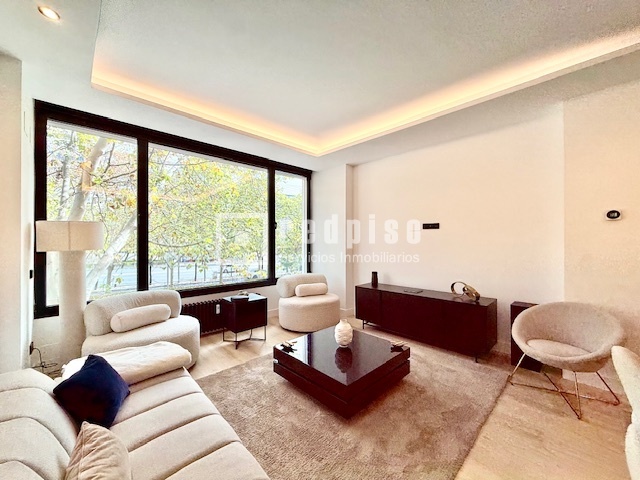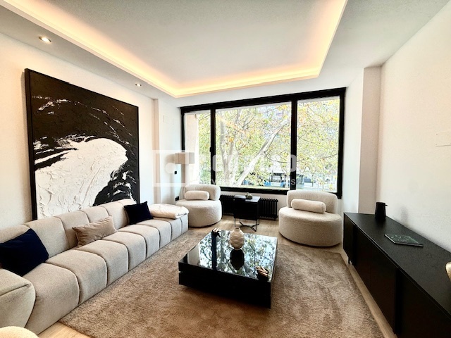 Exclusiva propiedad en Paseo de la Castellana – lujo y diseño en el corazón de Madrid Presento en exclusiva una joya inmobiliaria ubicada en una de las avenidas más emblemáticas y codiciadas de la capital: el Paseo de la Castellana. Se trata de una residencia única, completamente reformada con materiales de primer nivel y un interiorismo de diseño contemporáneo, pensada para quienes buscan un hogar sofisticado y listo para entrar a vivir. Situada en pleno eje financiero y comercial de Madrid, la vivienda se integra en una finca representativa con ascensor y acceso adaptado. El edificio ofrece además servicio de portería diario, incluidos fines de semana y festivos, garantizando comodidad, discreción y seguridad a sus residentes. La propiedad se entrega totalmente amueblada con piezas de diseño, seleccionadas cuidadosamente para equilibrar estética y funcionalidad. La distribución ha sido diseñada para maximizar la amplitud y la luz natural: • Hall de entrada que da paso a una cocina americana de estilo minimalista, equipada con electrodomésticos de última generación. • Salón-comedor amplio y luminoso, con impresionantes ventanales y cerramientos Cortizo que regalan vistas directas al Paseo de la Castellana. • Tres dormitorios generosos, el principal con baño en suite y gran capacidad de almacenaje gracias a múltiples armarios empotrados. • Dos baños completos con acabados de lujo. Entre sus prestaciones destacan el sistema de calefacción central por conductos, el excelente aislamiento térmico y acústico, y la calidad de cada detalle en la reforma. Esta propiedad representa una oportunidad excepcional para quienes desean residir o invertir en una de las direcciones más prestigiosas y exclusivas de Madrid, combinando confort, diseño y ubicación privilegiada.