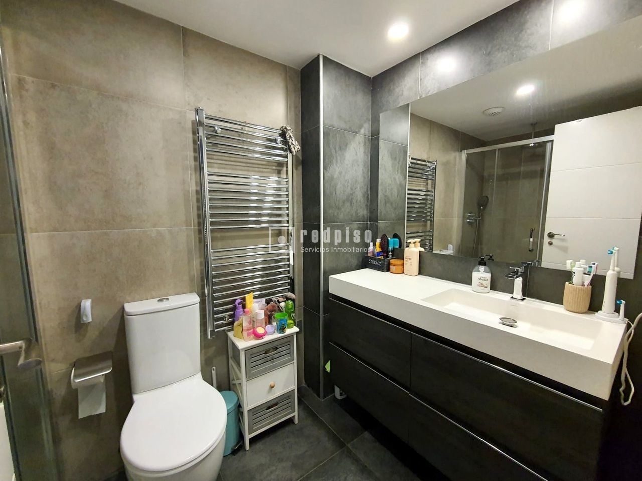 Redpiso Getafe Sector 3 vende fabuloso piso con TERRAZA en zona Buenavista en urbanización cerrada con piscina, zonas ajardinadas y parque infantil. Dispone de 105 m2 de superficie construida, distribuidos en 3 dormitorios (con armarios empotrados), salón, 2 baños completos (uno en suite y el otro en el pasillo distribuidor) y cocina con tendedero. Cuenta con una plaza de garaje y trastero en la misma planta. La vivienda consta de calefacción por suelo radiante, aire acondicionado frío y calor por conductos, paredes en liso, ventanas oscilobatientes de climalit con rótura puente térmico, suelos de tarima y plaqueta, puertas interiores lacadas en blanco y puerta principal blindada. La vivienda se encuentra en perfecto estado. Muy bien comunicado al lado de la autovía de la A-42; M-50; Metro Sur, Conservatorio y distintas líneas de autobuses urbanos e interurbanos. Al lado de centro comercial Sector III en el que disponemos de Alcampo, Mercadona, variedad de tiendas de ropa y establecimientos de hostelería. Si desea visitarlo, no dude en contactar con nosotros para concretar una cita sin ningún tipo de compromiso. Puede ver más inmuebles en: "www.redpiso.es”
