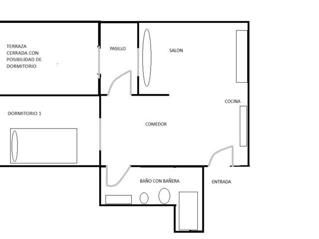 La vivienda cuenta con amplio comedor-cocina con salón abierto, 1 dormitorio, 1 baño completo con bañera y una terraza cerrada que da posibilidad de un segundo dormitorio