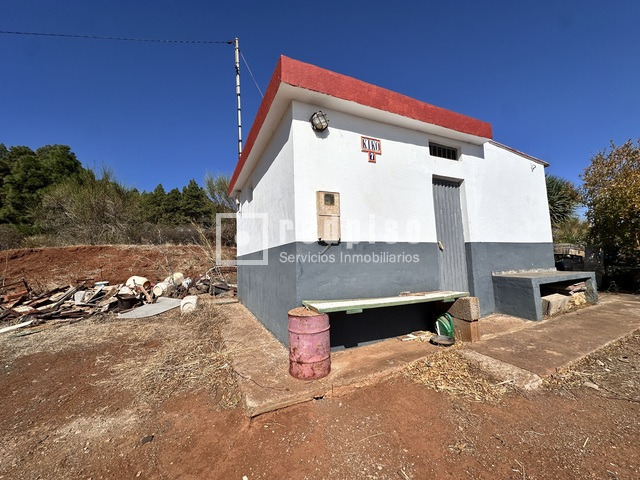 La propiedad también incluye un cuarto de aperos de aproximadamente 25 m², compartimentado en dos partes: una destinada a herramientas y otra para aparatos, además de contar con un aljibe de 16,000 litros, asegurando el suministro de agua para tus cultivos.